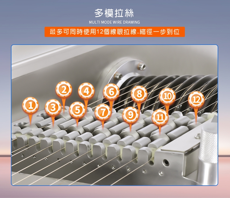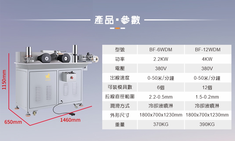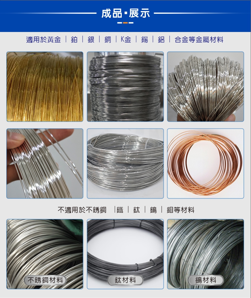 12模位拉絲機 ▇ 型号:BF-6WDM 適用金屬: 黃金、銀、銅、鉑、鈀、銠、銥、鋁、錫及其合金等金屬材料 應用行業: 新材料研發、貴金屬提純、焊料行業、電工線材、高校研究院、首飾廠等行業 產品優勢: 1.采用日本進口軸承,拉線平穩,不斷線 2.雙塔輪表面噴陶瓷特殊加硬工藝,防傷線,更經久耐用 3.自帶收排線功能,輕松解決纏繞問題 4.線眼浸泡法冷卻,提高線材光潔度