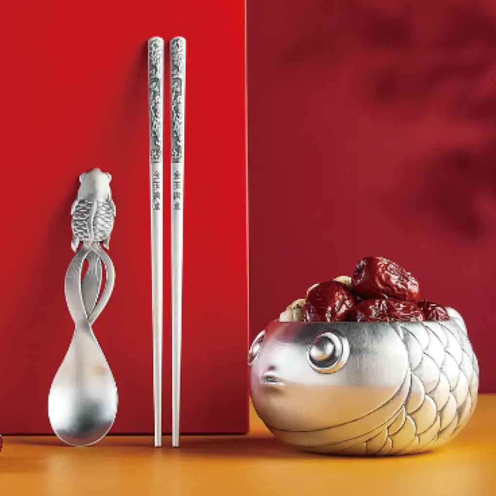 金玉滿堂餐具 材質:足銀999 克重:256克/套 工藝:仿古、浮雕 件數:3件套 https://www.bilibili.com/video/BV1Wi4y1w7rT/?spm_id_from=888.80997.embed_other.whitelist&t=3.809273&bvid=BV1Wi4y1w7rT