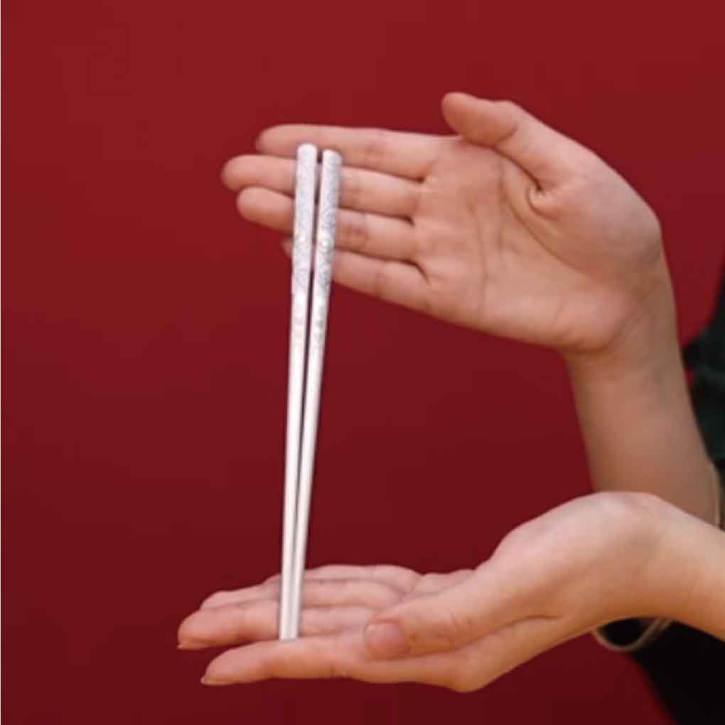 五福臨門餐具套組 材質:足銀999 克重:220克/套 工藝:仿古、浮雕 件數:3件套 https://www.bilibili.com/video/BV1aX4y1T7vM/?spm_id_from=888.80997.embed_other.whitelist&t=3.874519&bvid=BV1aX4y1T7vM